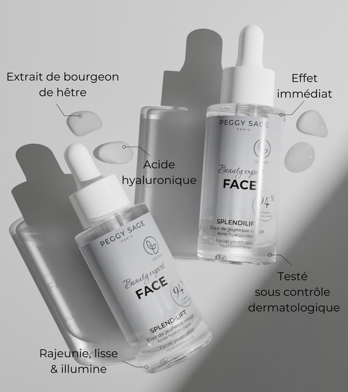 Entdecken Sie das Elixier für jugendliche Gesichtshaut - Splendilift eine vegane Pflege, hergestellt in Frankreich mit 94 % natürlichen Inhaltsstoffen. Dieses Elixier, angereichert mit Hyaluronsäure und Buchenknospenextrakt, ist das Geheimnis für sichtbar jüngere, strahlendere und glattere Haut bereits ab der ersten Anwendung.