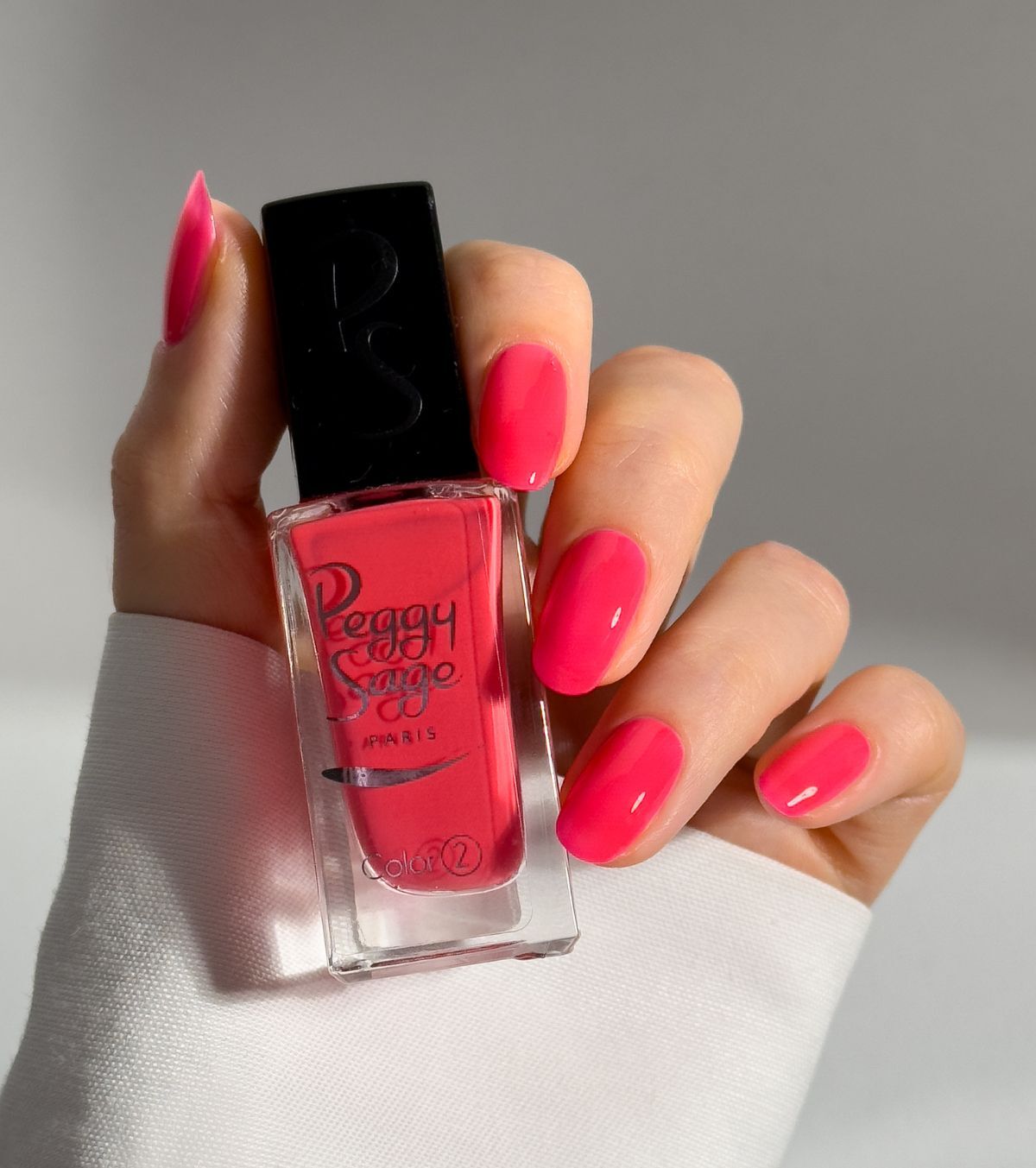 Anwendung in 3 Schritten: Kombinieren Sie den Base Coat, die Farben Ihrer Wahl und den Top Coat von Peggy Sage, die auf natürliche UV-Strahlung reagieren, für optimalen Halt.